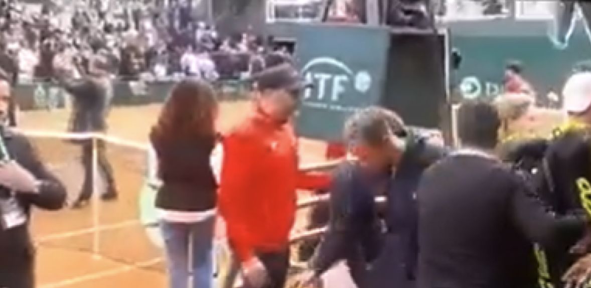 Il punto decisivo della serie è stato conquistato da Nicolas Mejia, che ha festeggiato in modo molto evidente la vittoria, consegnando il successo alla Colombia. La reazione del pubblico di casa, però, è stata immediata e violenta.